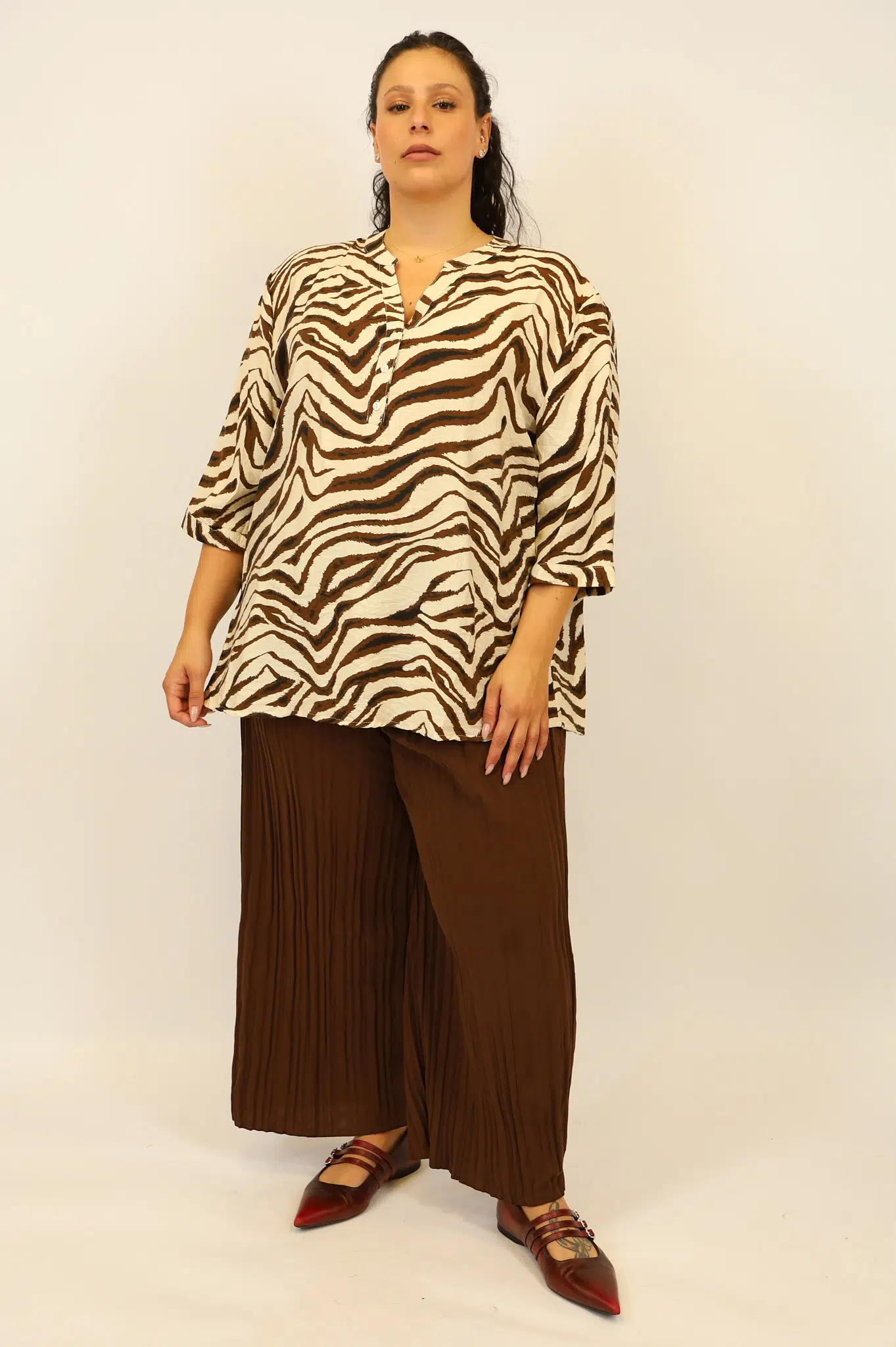 עמוד הביתנעמי פלוסחולצות וטופיםחולצות שרוול ארוךחולצה הדפס זברה Nadine | קאמל