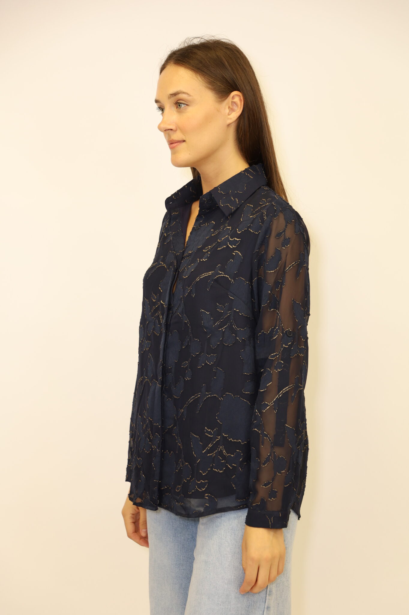 חולצה עם רקמות Ella | כחול – ML-008-1808-BLUE