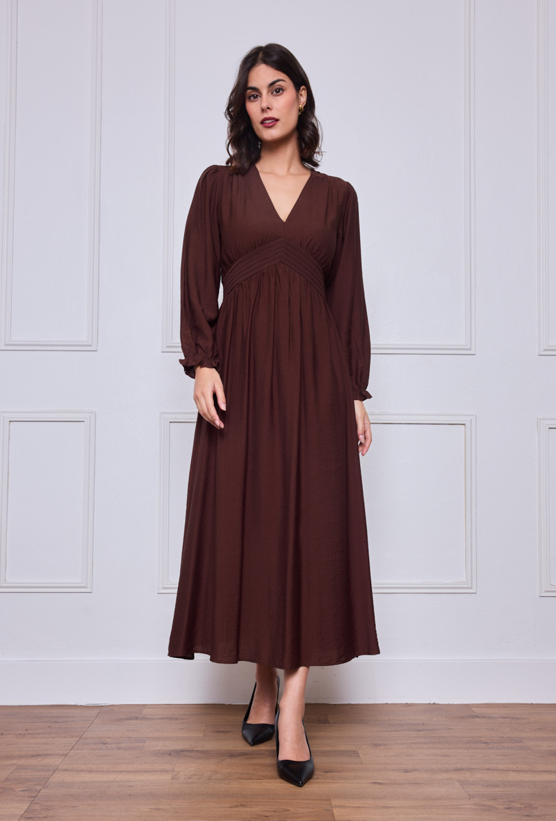 • שמלה סאטן שילוב תחרה Lily | שוקו – IV-AC7877-CHOCO