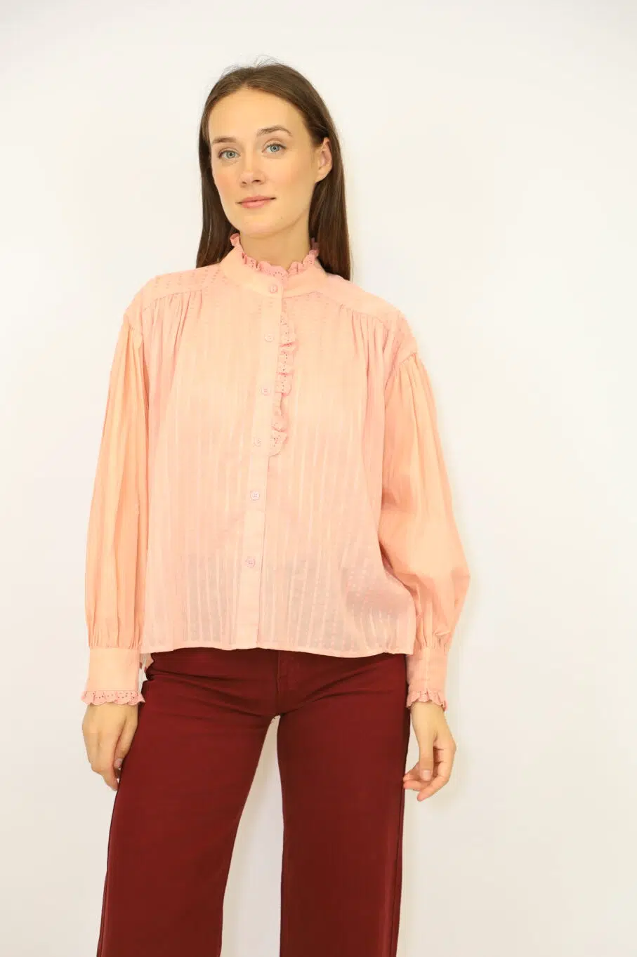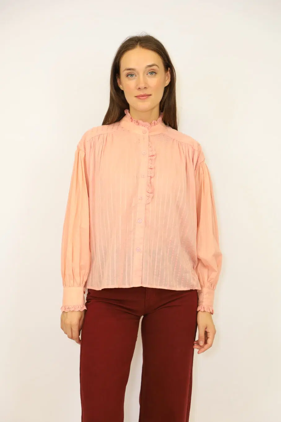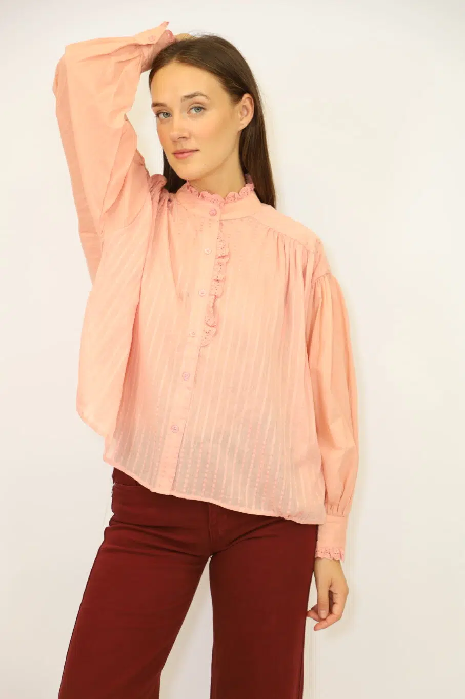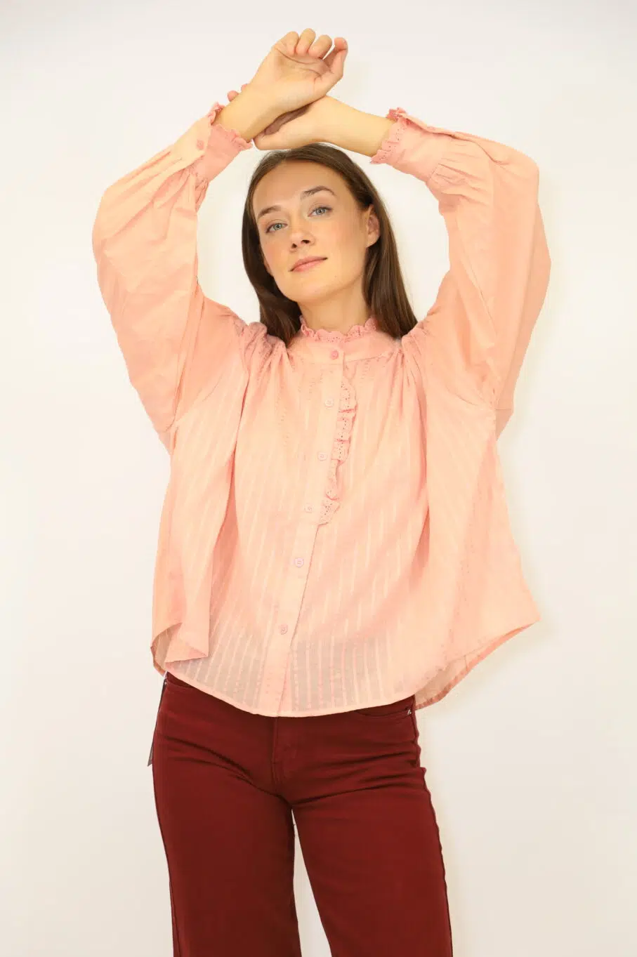 • JSM CH3075 PWחולצת תחרה פסים Alice | ורוד לבןחולצת תחרה פסים Alice | ורוד לבןחולצת תחרה פסים Alice | ורוד לבן