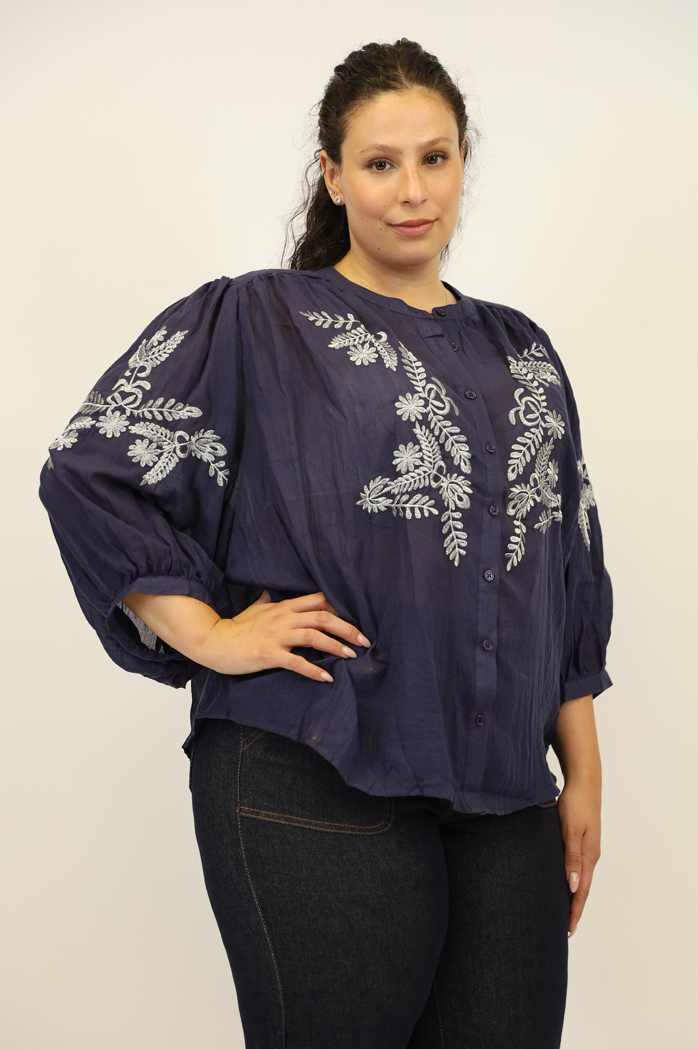 • ML M790 5 2062 BLUE1חולצת רקמה Rose | כחולחולצת רקמה Rose | כחולחולצת רקמה Rose | כחול