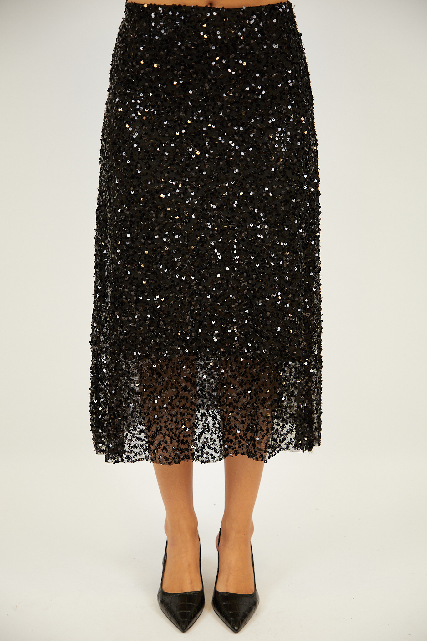 חצאית בעיטור פאייטים Victoria | שחור – IV-PR27524-BLACK