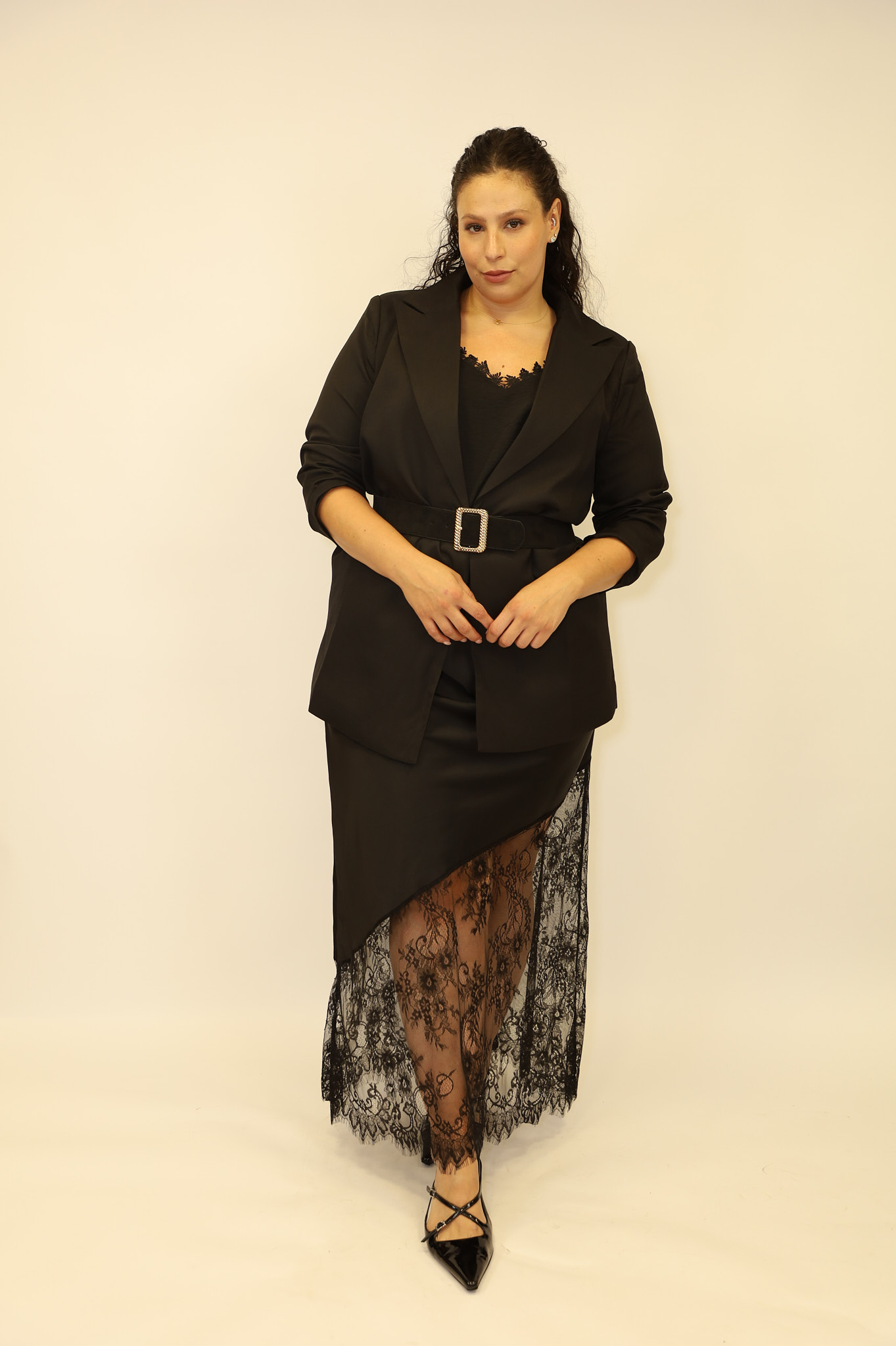 עמוד הביתנעמי פלוסחצאיותחצאית סאטן תחרה Lina | שחור