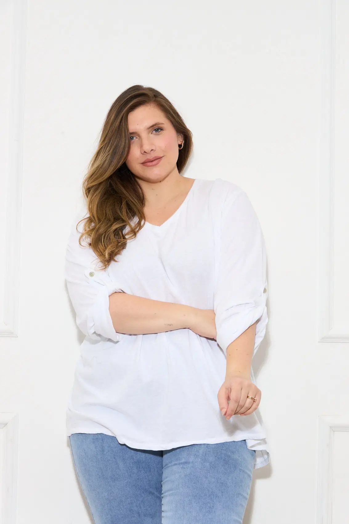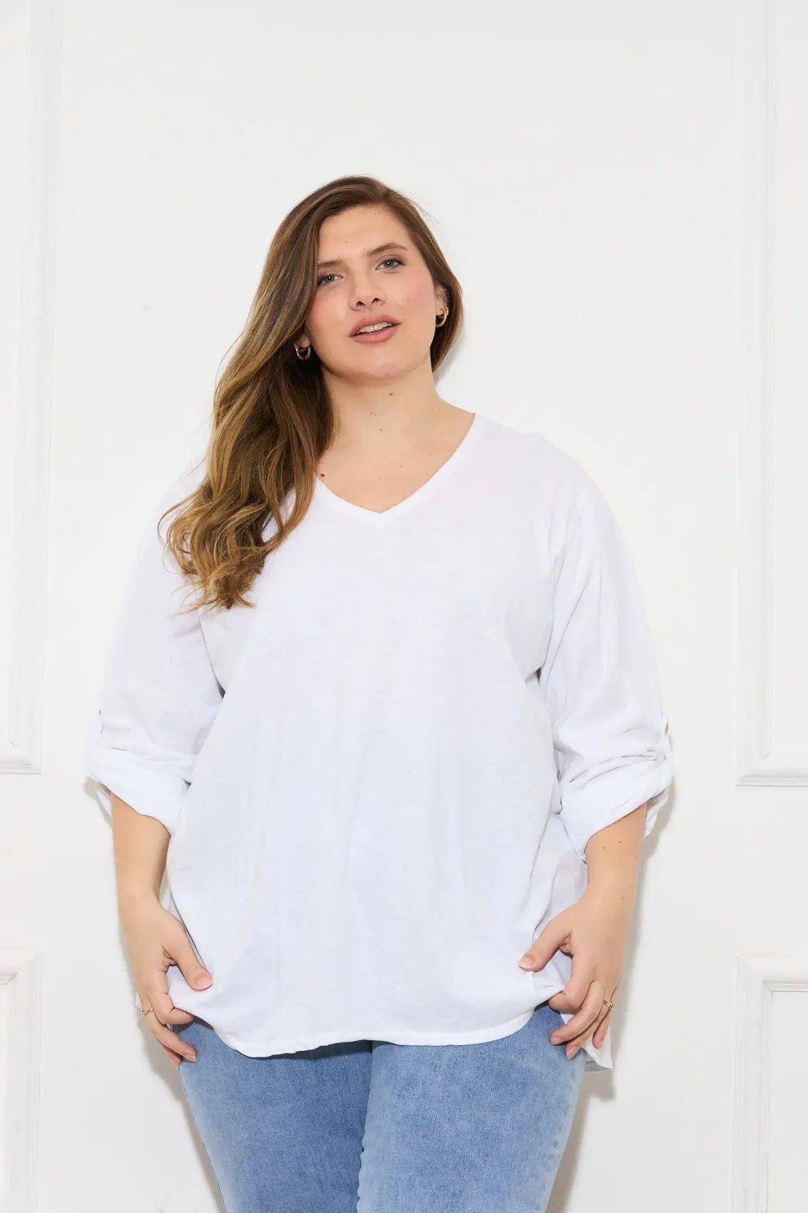 מק"ט: BEL-HSA035-WHITE קטגורִיה: טי שירטים תג: 17012025 Brand: Noemi Plus