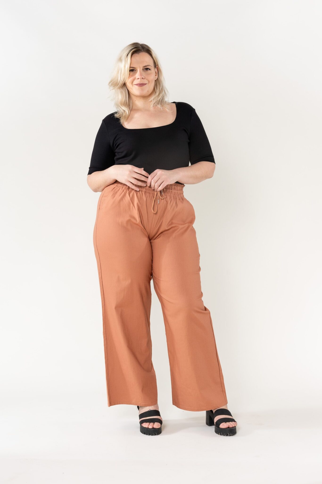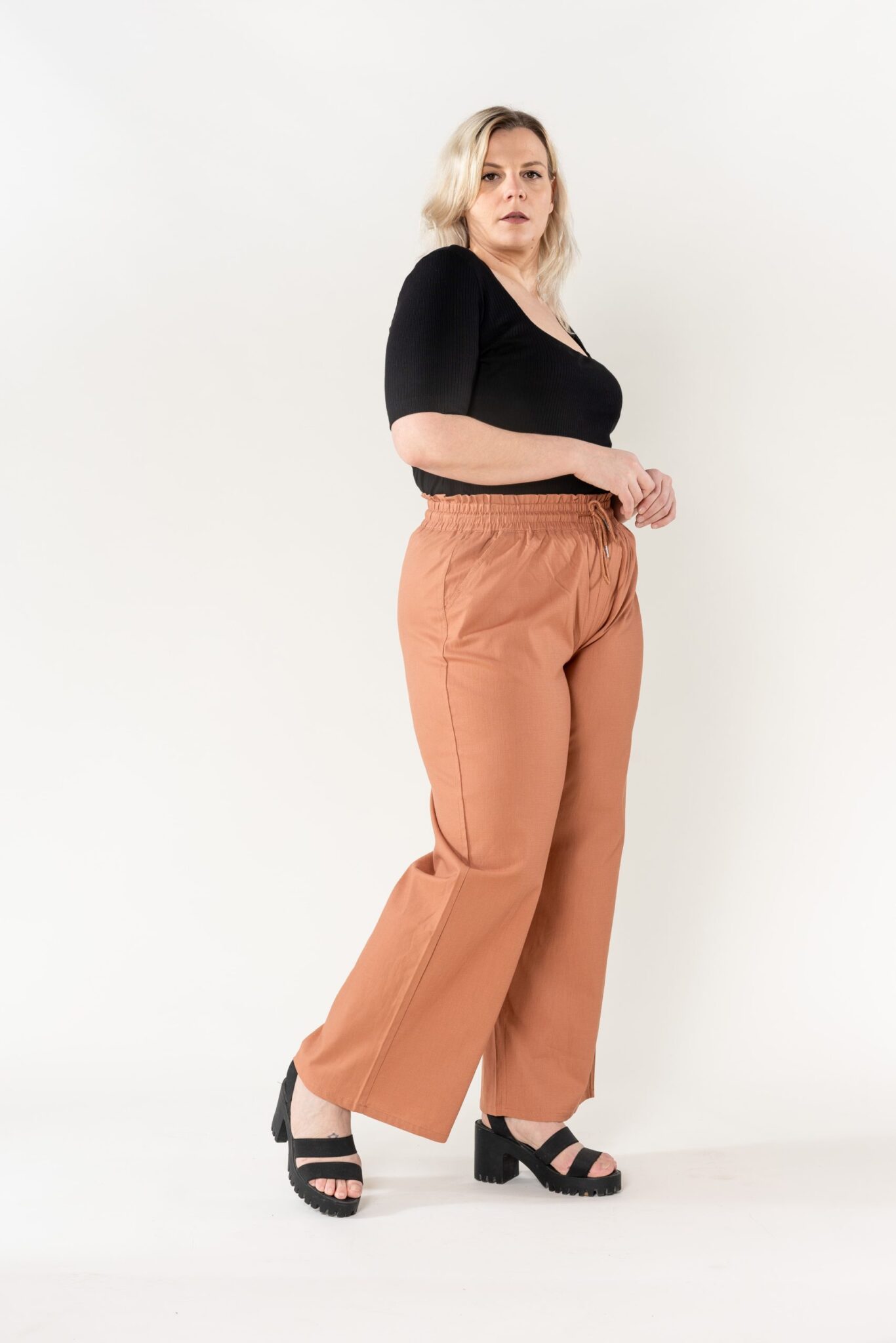 • NC A002 21 TERACOTAמכנסיים בגזרה רחבה Paula | טרקוטהמכנסיים בגזרה רחבה Paula | טרקוטה