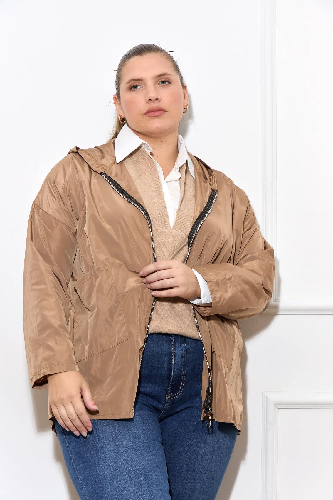 מק"ט: EF-91362-CAMEL קטגורִיה: ג׳קטים ומעילים תגים: 10092024, Winter Sales 2024 - Plus Brand: Noemi Plus