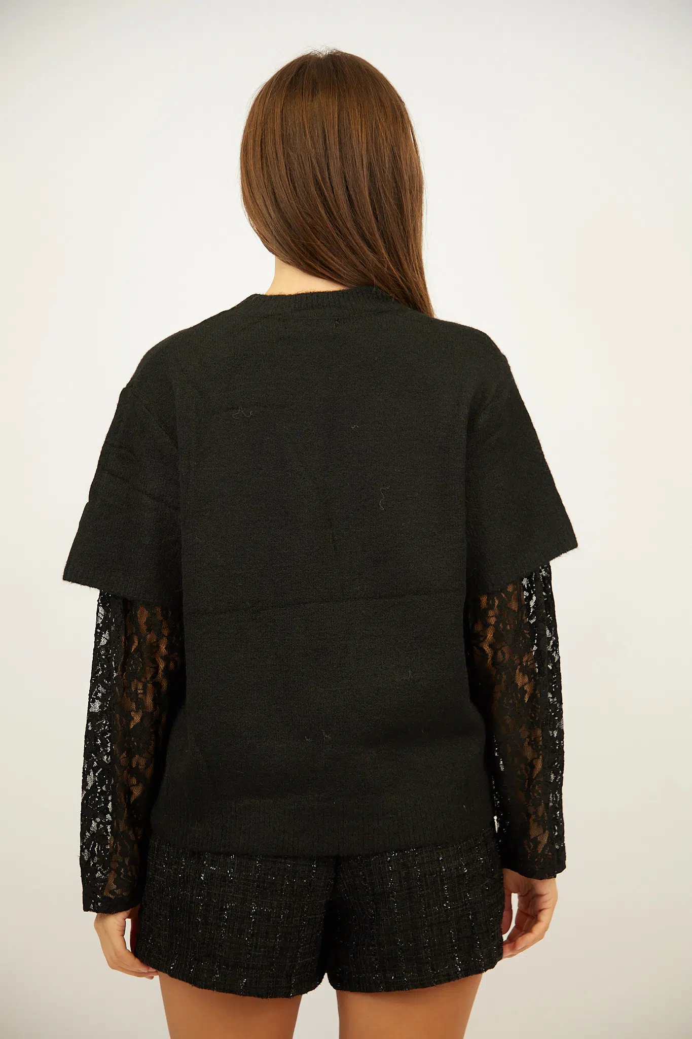 סוודר אלגנטי עם תחרה Ophélie | שחור – ML-F73013-BLACK