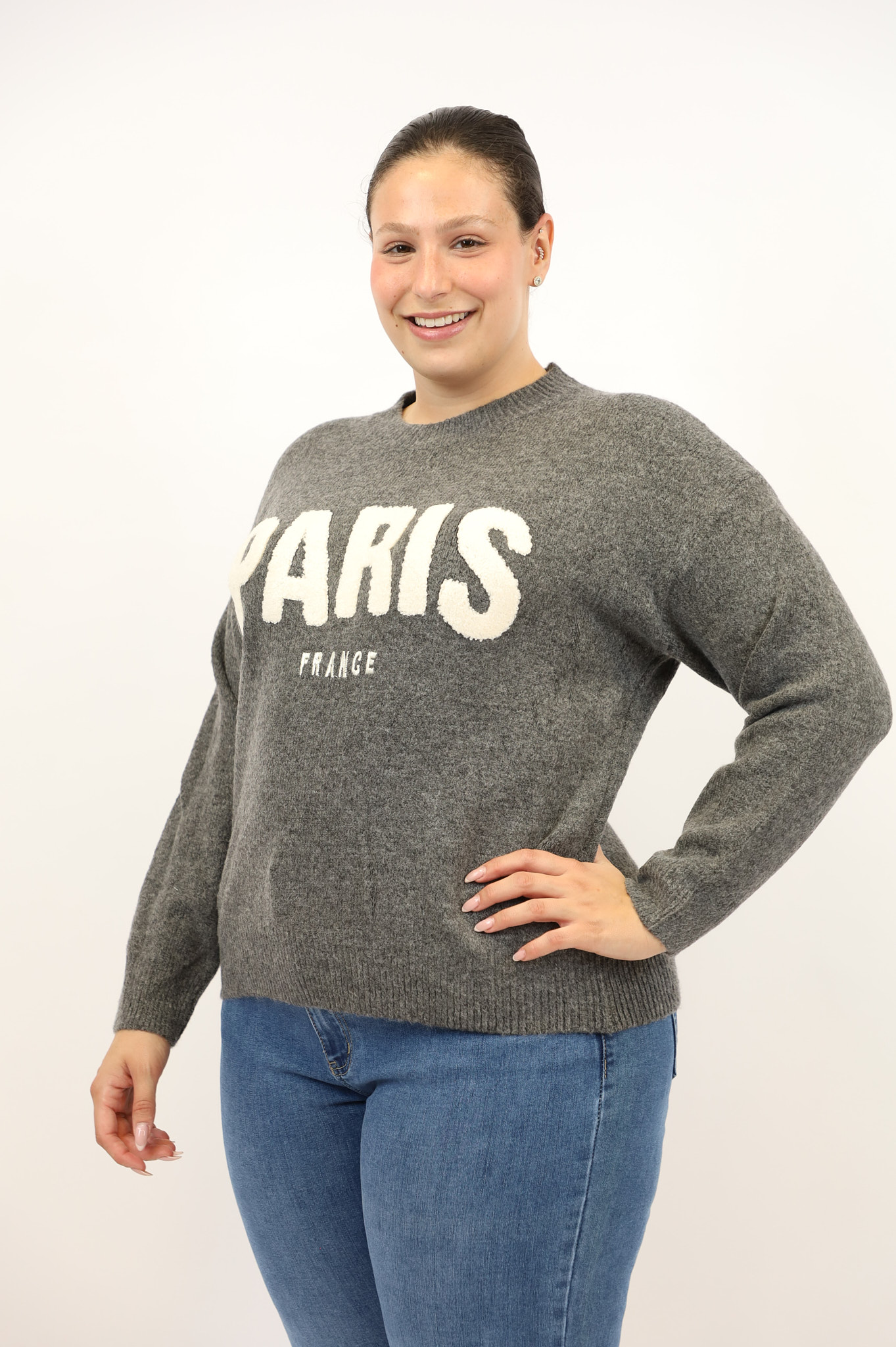 סריג עם כיתוב PARIS|אפור – BY-SW8091-5-GRIS