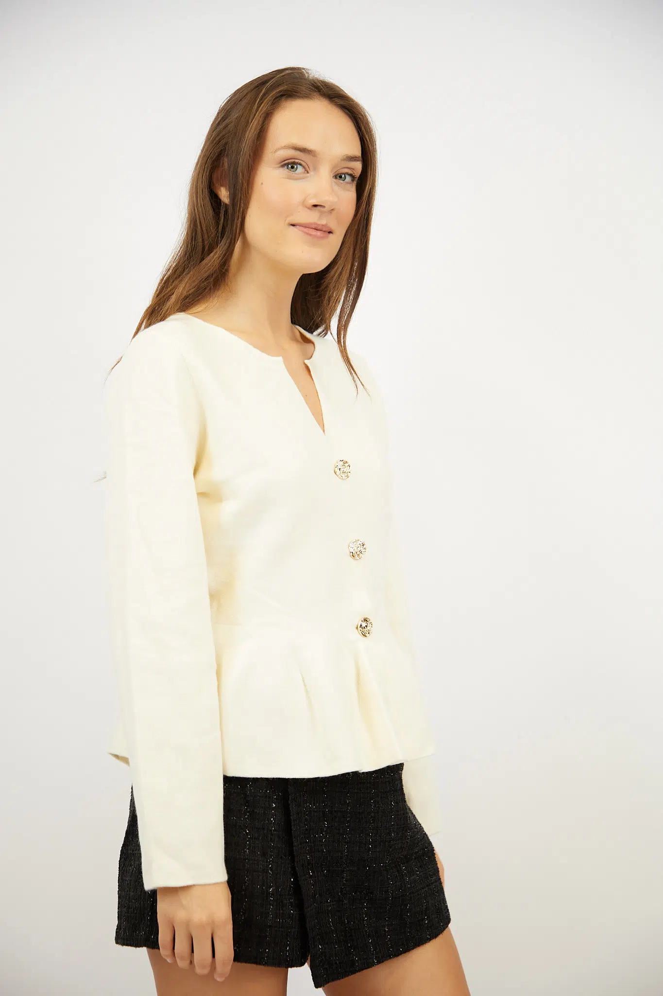 סריג עם כפתורים מוזהבים Emma | קרם – INAP-AR977-CREME