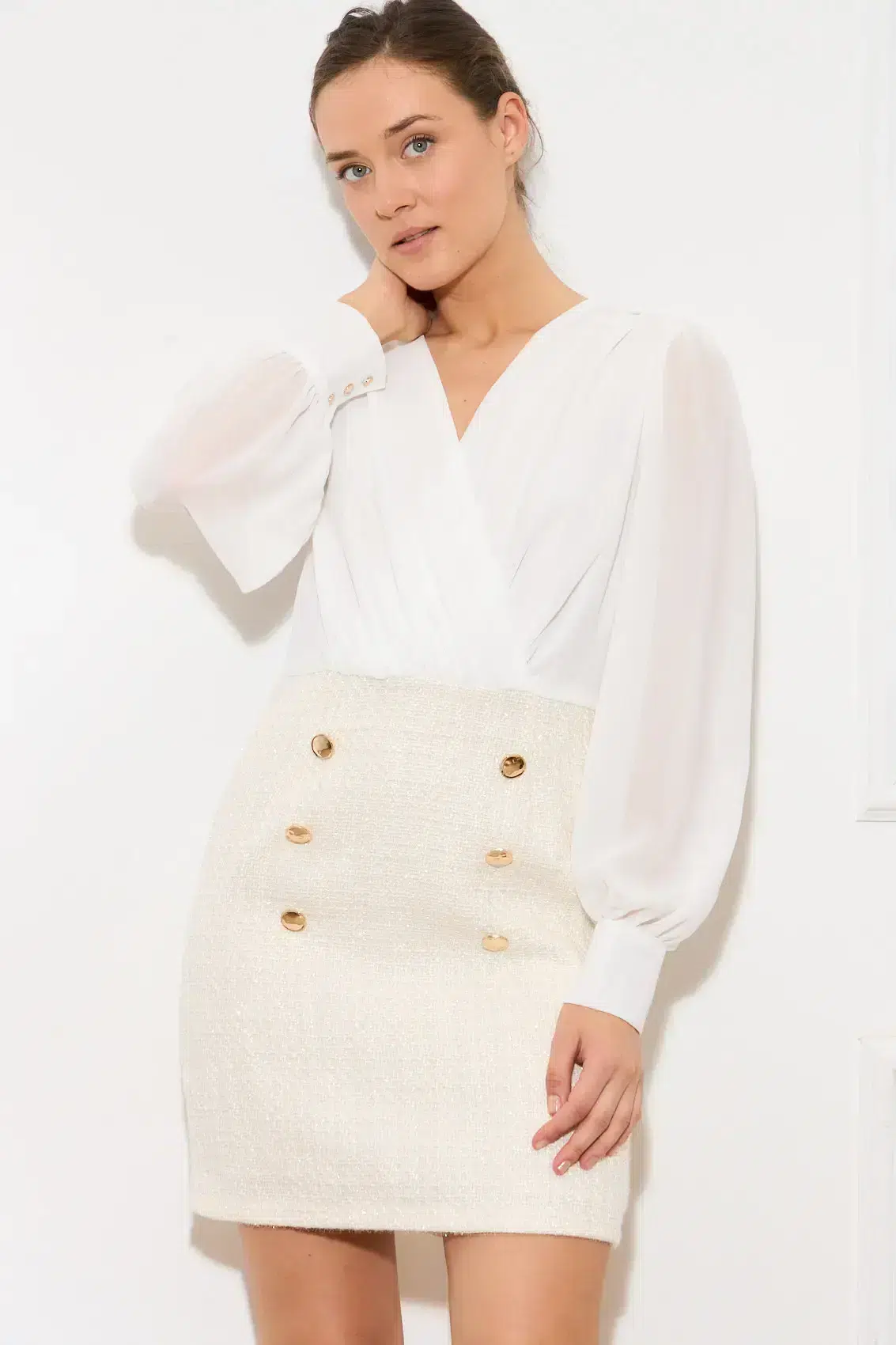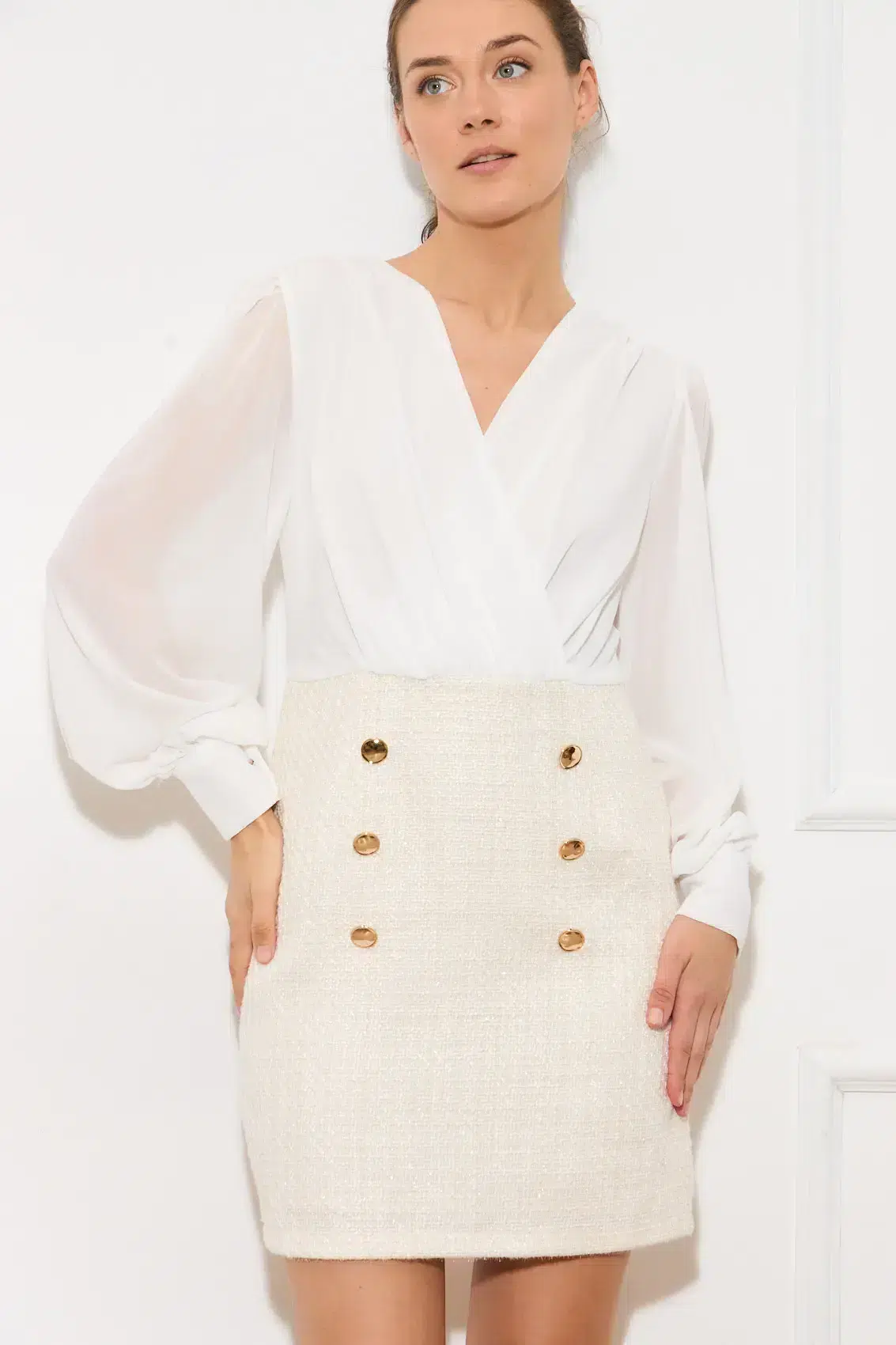 עמוד הביתנעמי בוטיקשמלותשמלה Tweed Mika | לבן